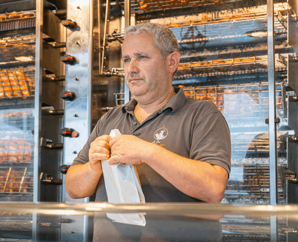 la passion du fondateur Nikitas Doutsis : proposer des poulets fermiers, bio et classiques de qualité supérieure, accompagnés de garnitures maison.